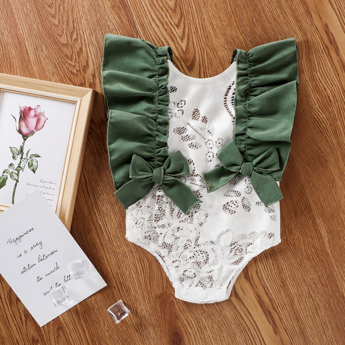 Baby Flutter-sleeve Flounced Ruffled Bottom Snap Romper