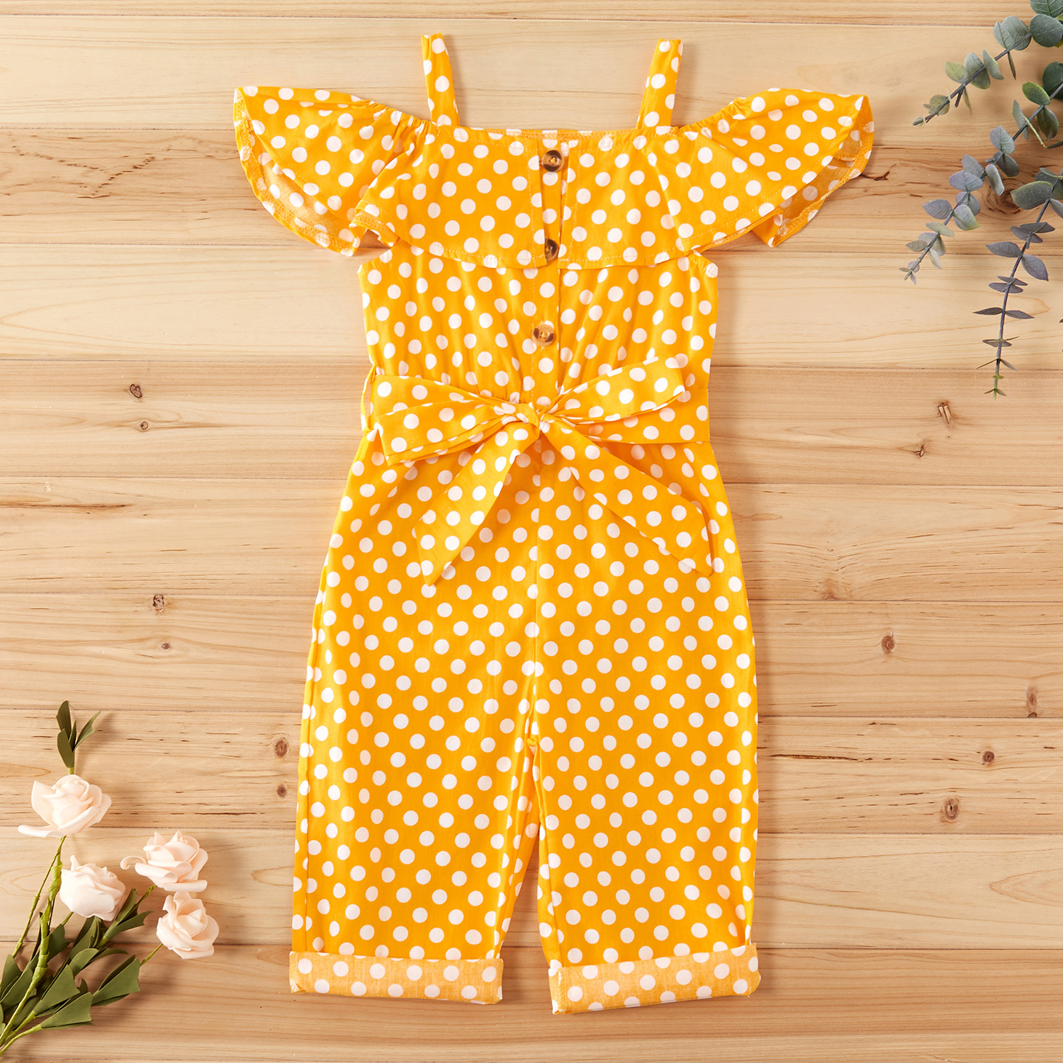 Toddler Girl Pretty Polka Dots Off Shoulder Strappy Onesies