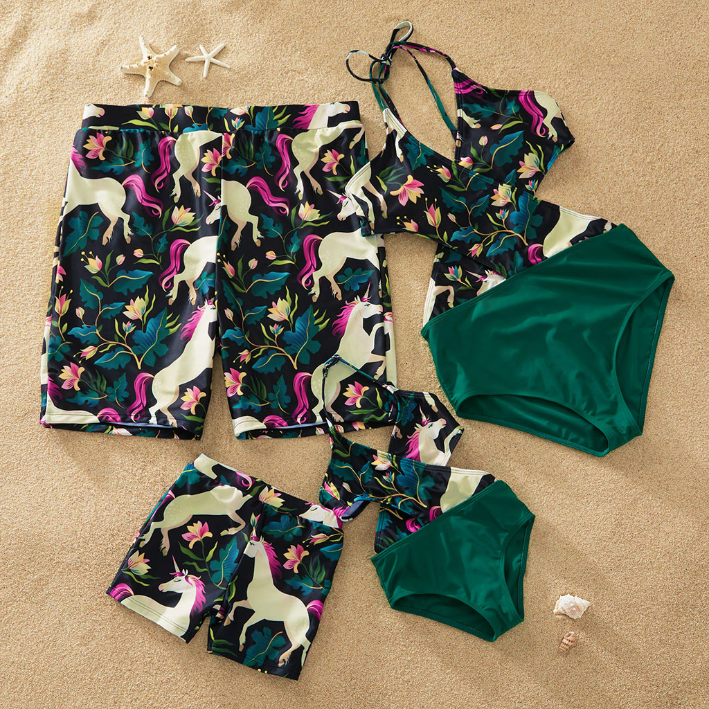 Unicorn Printed Swimsuit for Family