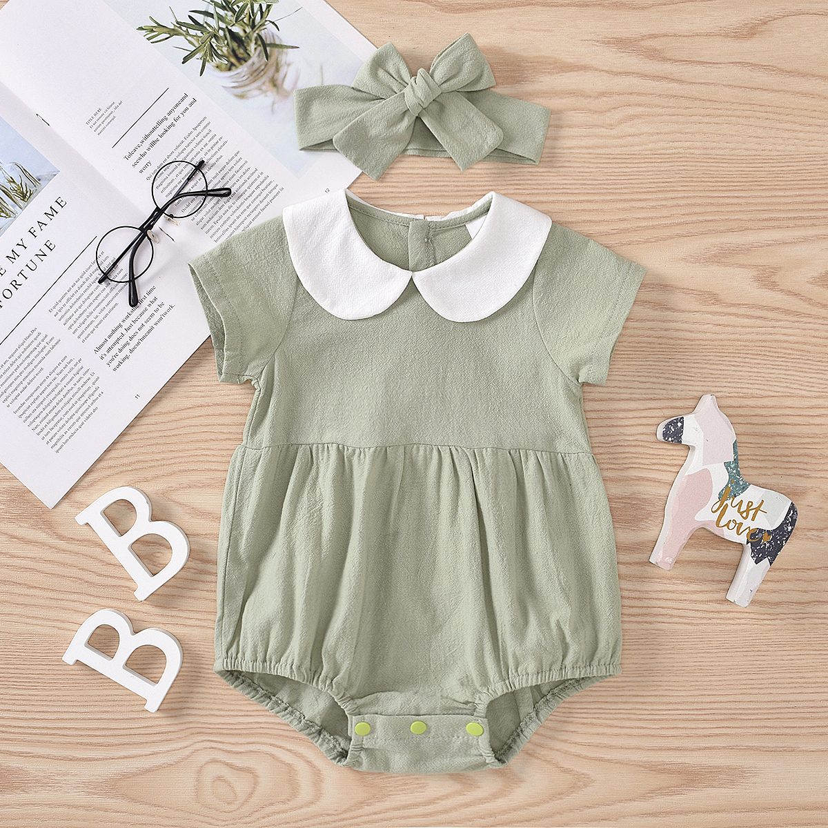 2-piece Baby Doll Collar Solid Rompers with Headband
