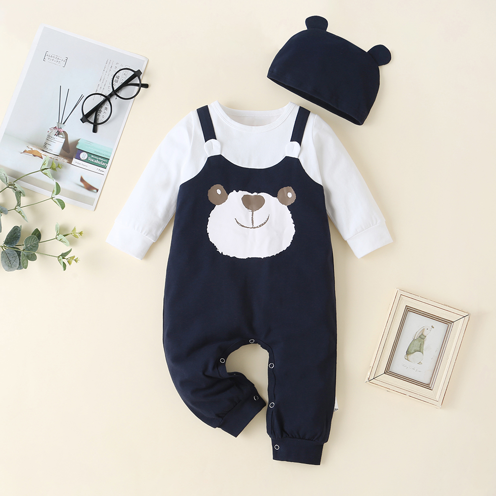 2-piece Baby Bear Faux-two Jumpsuit with Hat