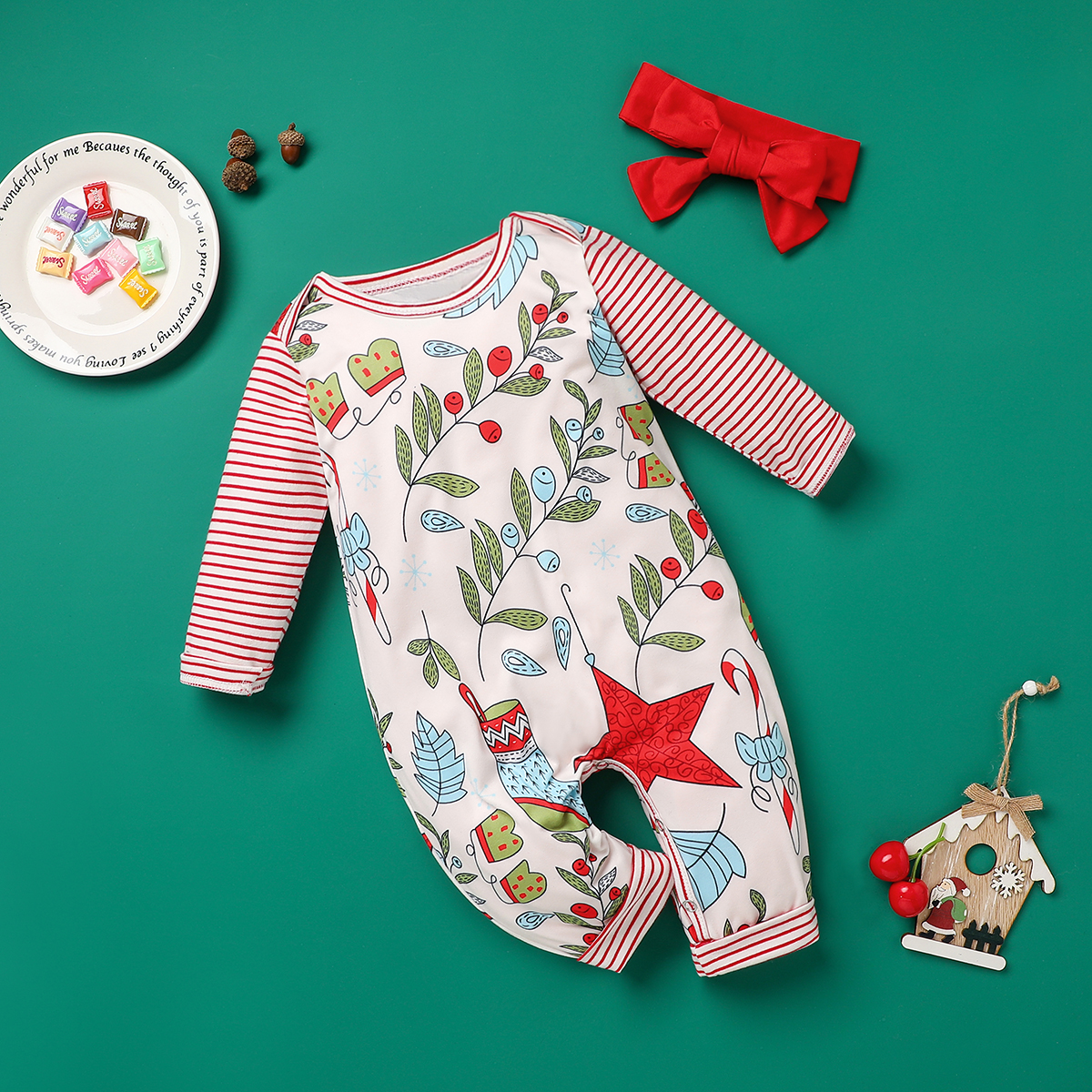 2-piece Baby Christmas Striped Jumpsuit with Headband