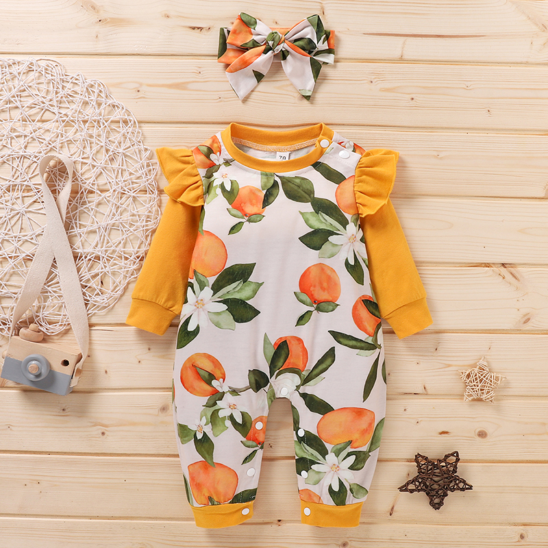 2-piece Baby Fruit Ruffled Jumpsuit and Headband Set