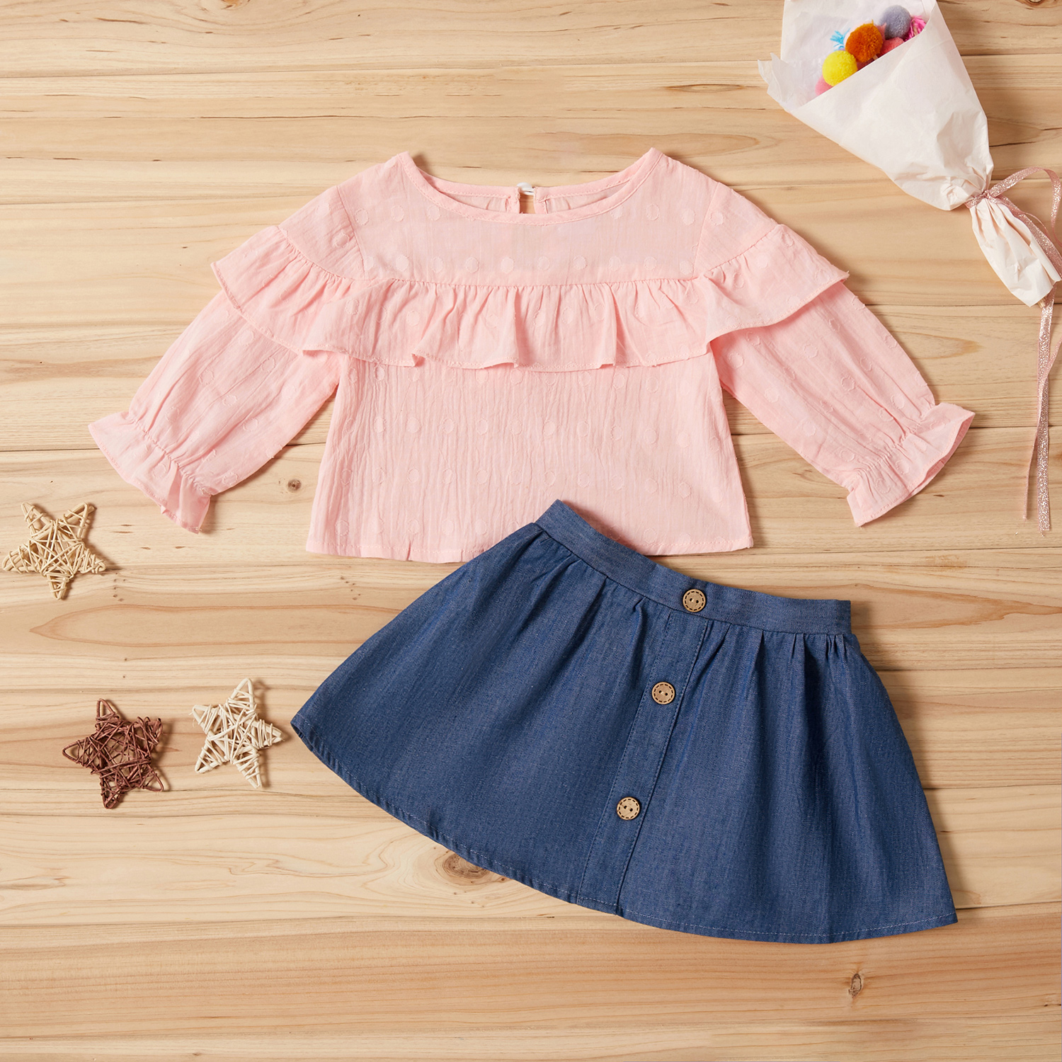 2-piece Baby Girl Solid Lace Top and Elastic Waist Skirt Set