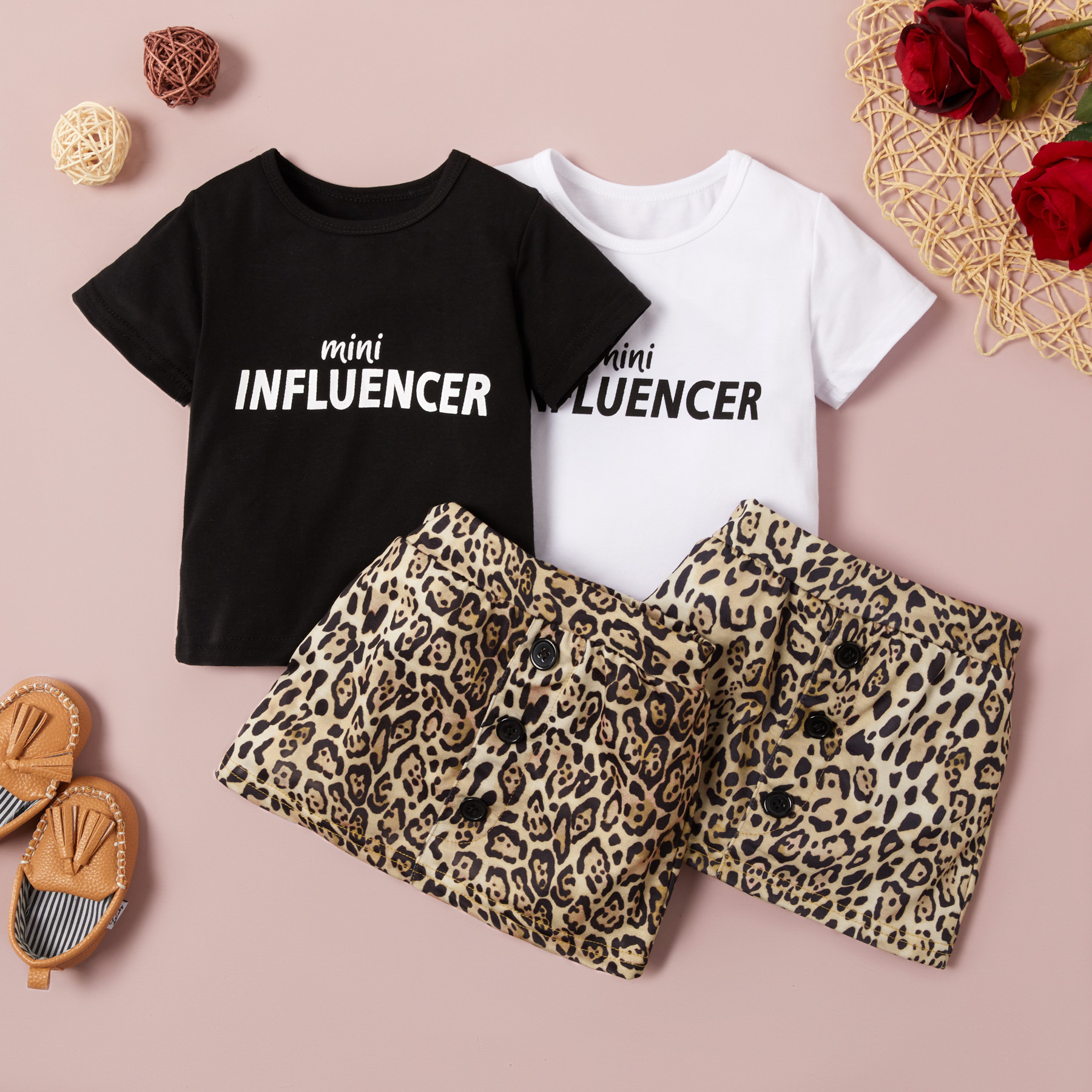 2-piece Baby MINI INFLUENCER Print Top and Leopard Print Skirt