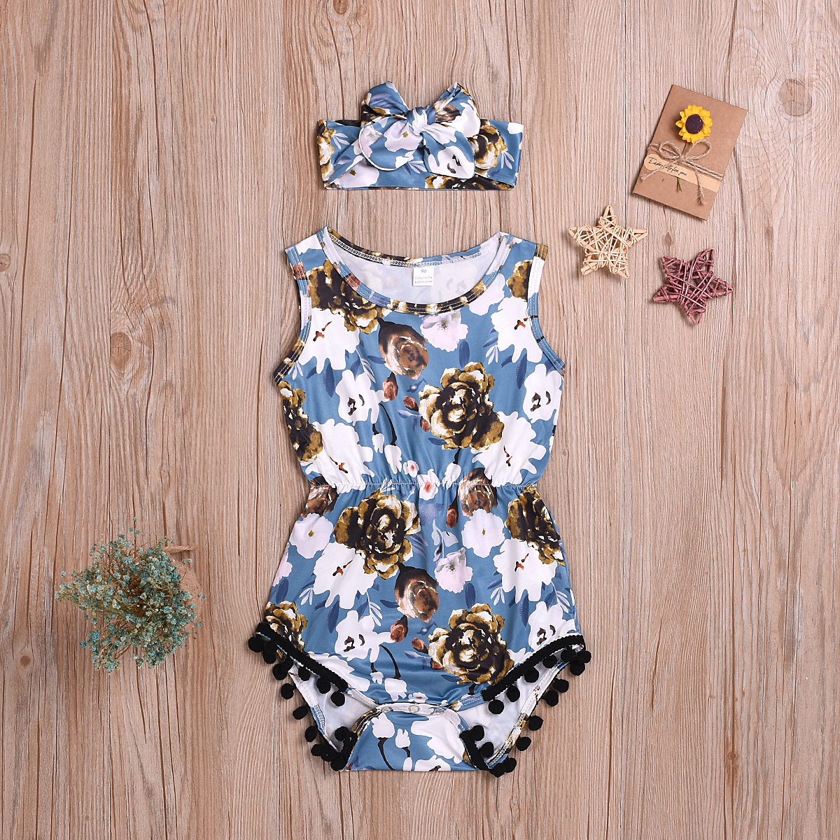 Baby Girl Floral Allover Sleeveless Romper and Headband