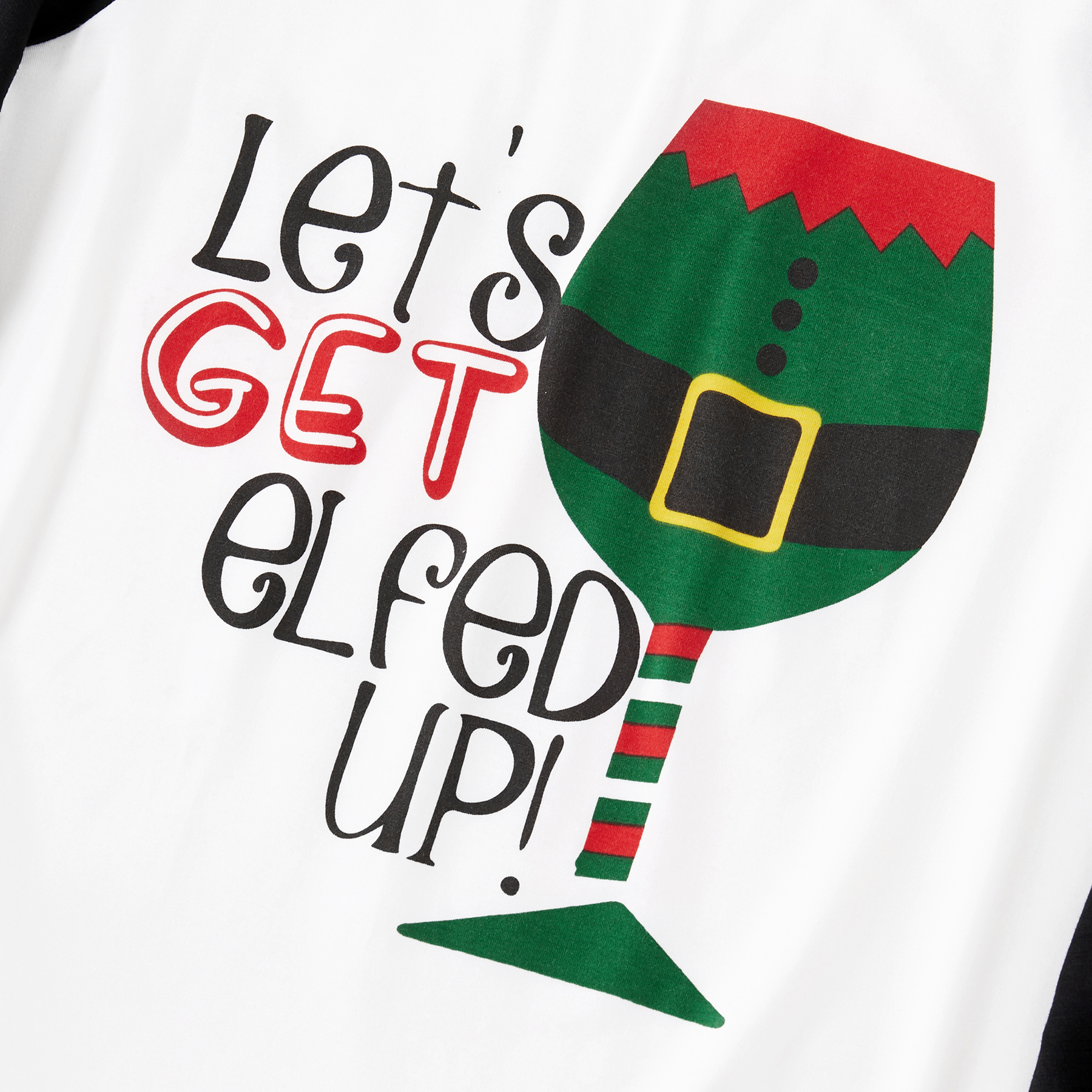 Let’s Get Elfed Up Christmas Glass Top and Striped Pants Family Matching Pajamas Set