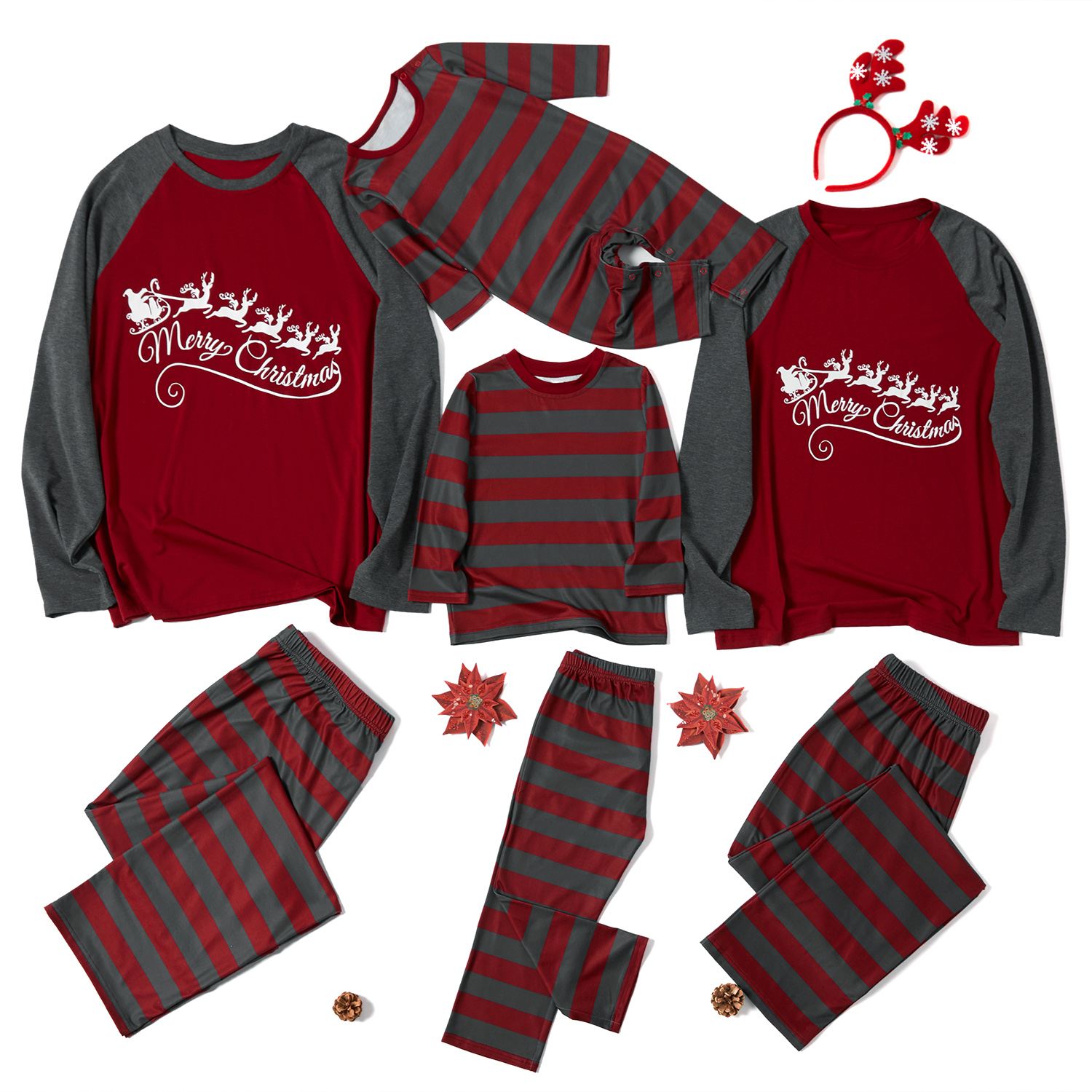 Merry Christmas Reindeer Top and Striped Pants Family Matching Pajamas Set